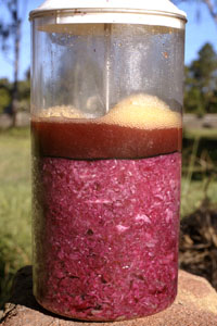 gas has pushed the excess juice out of the cabbage and the liquid level