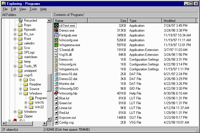 The VSG configuration program (see Winconfg.exe in the image above) is
