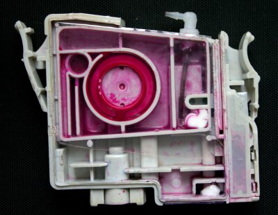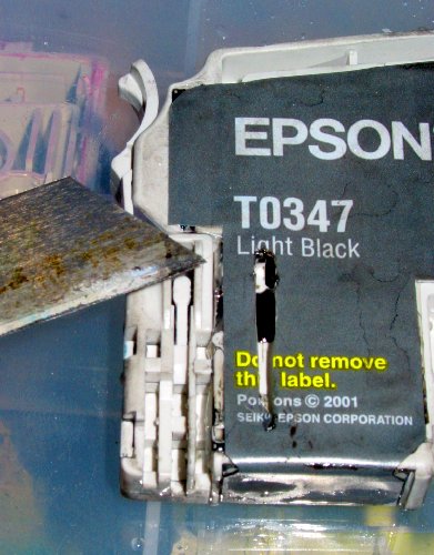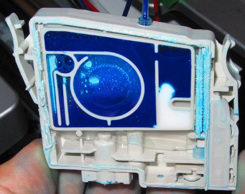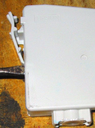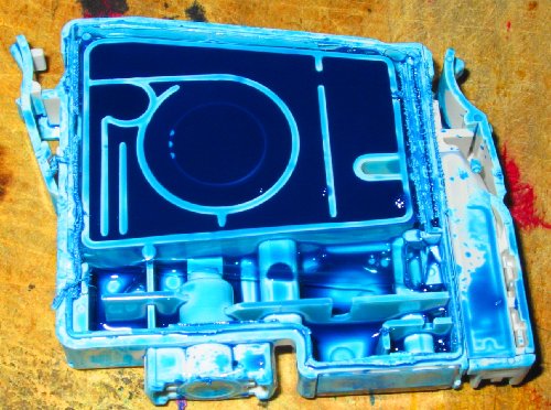For over a year now my CIS has been a mix of V1 and V2 type modified cartridges. Several people promised me empty 2100p/2200p carts but no-one came good with them. Recently I was given some c82 carts – these are almost identical but they only come in 3 colors (black is a bigger cart). I knew I would have to either replace or reprogram the chips for the 2100p to accept them. It should have been trivial for me to reprogram them with my homebrew resetter (see chip hack). Unfortunately the c82 chips (at least this batch) needed slower write timing and I had to spend a ½ a day sorting it out. I eventually got it to work and the chips seem ok in the 2100p. So far I have only replaced the C Y M carts and the mechanical keying is the same. When I replace the light color I will have to hack (literally) the keys. The system I had, had 3 main problems.