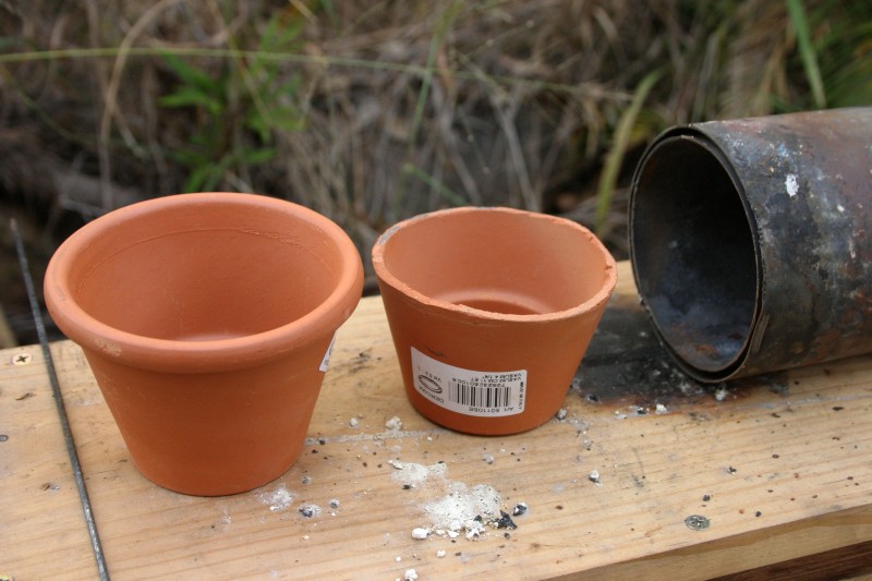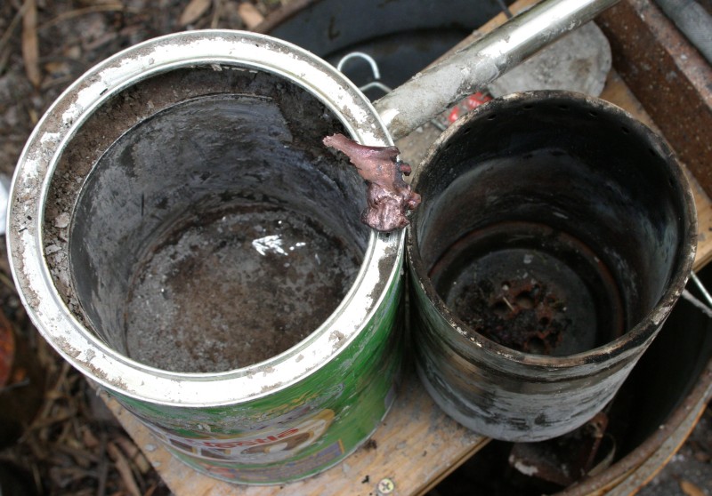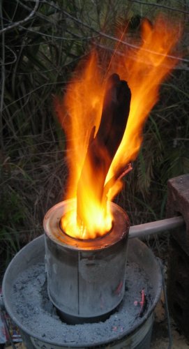 Melting steel is just a novelty. I'll attempt it again in a month or so with some sort of refractory lining in place – possibly just a clay pot. I'm more interested in melting aluminium and that is easy. More later....