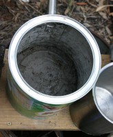 also be made from fossil fuel. In any case the amount of fuel involved is minimal, I guess I used a kilo of wood here. Also visible in the first photo is my insulation – I simply placed the flask in a bed of wood-ash. We can make our own insulation as well :) |