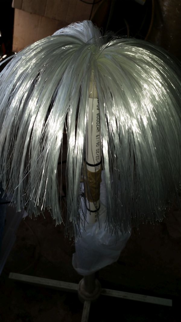 Above is a photo of 160 strands of chopper glass ready to be resin soaked and pulled into a PVC tube mould.