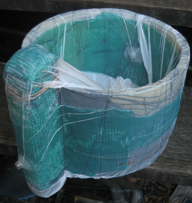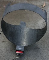 Black rainbow started with a shopping trip to buy wax. I still had enough wax (just). This project started with a shopping trip to buy a 26 cm cooking pot. Inside this pot was placed a cut-off plastic bucket full of water and the remaining gap was filled with molten wax. This formed a tube for moulding the propeller shroud.